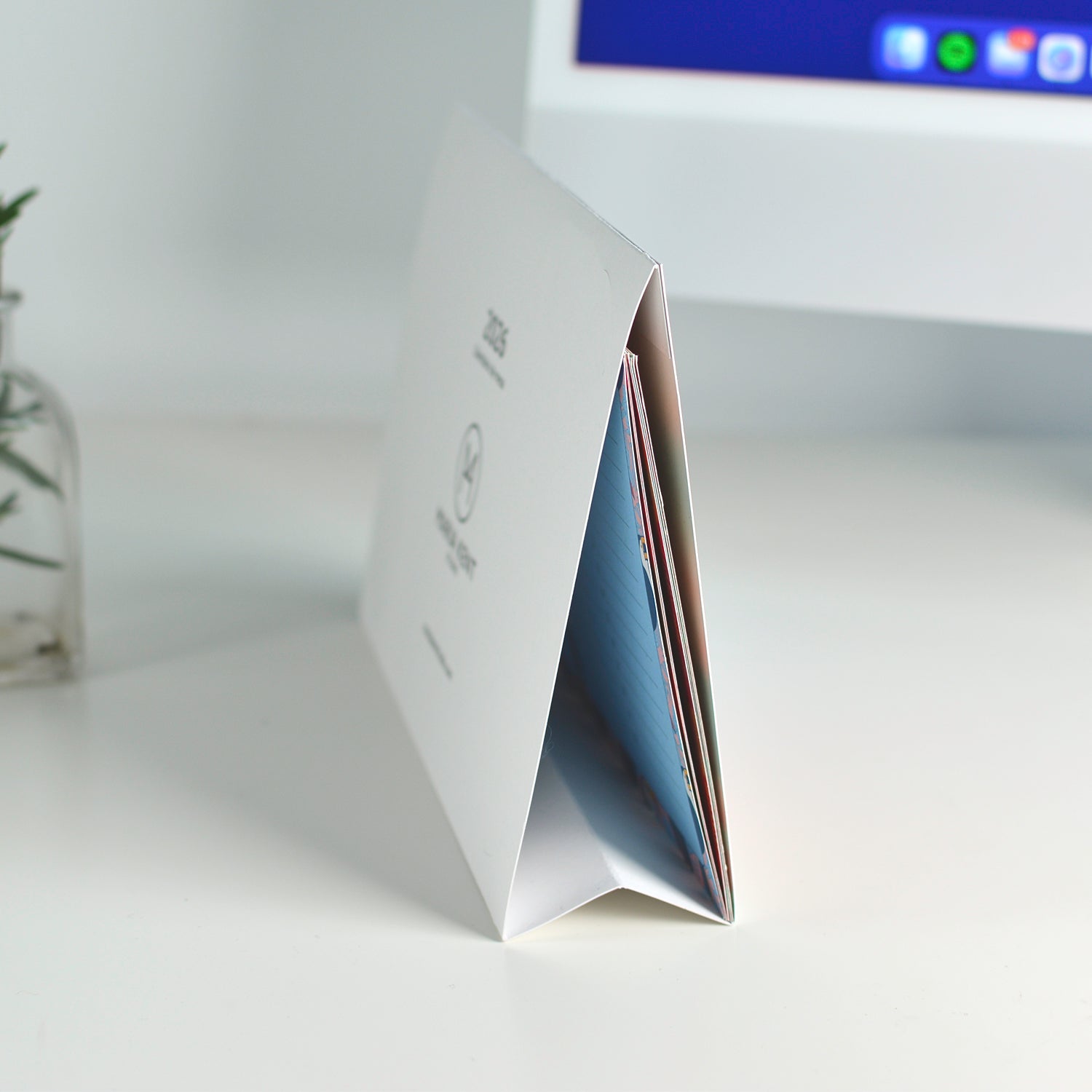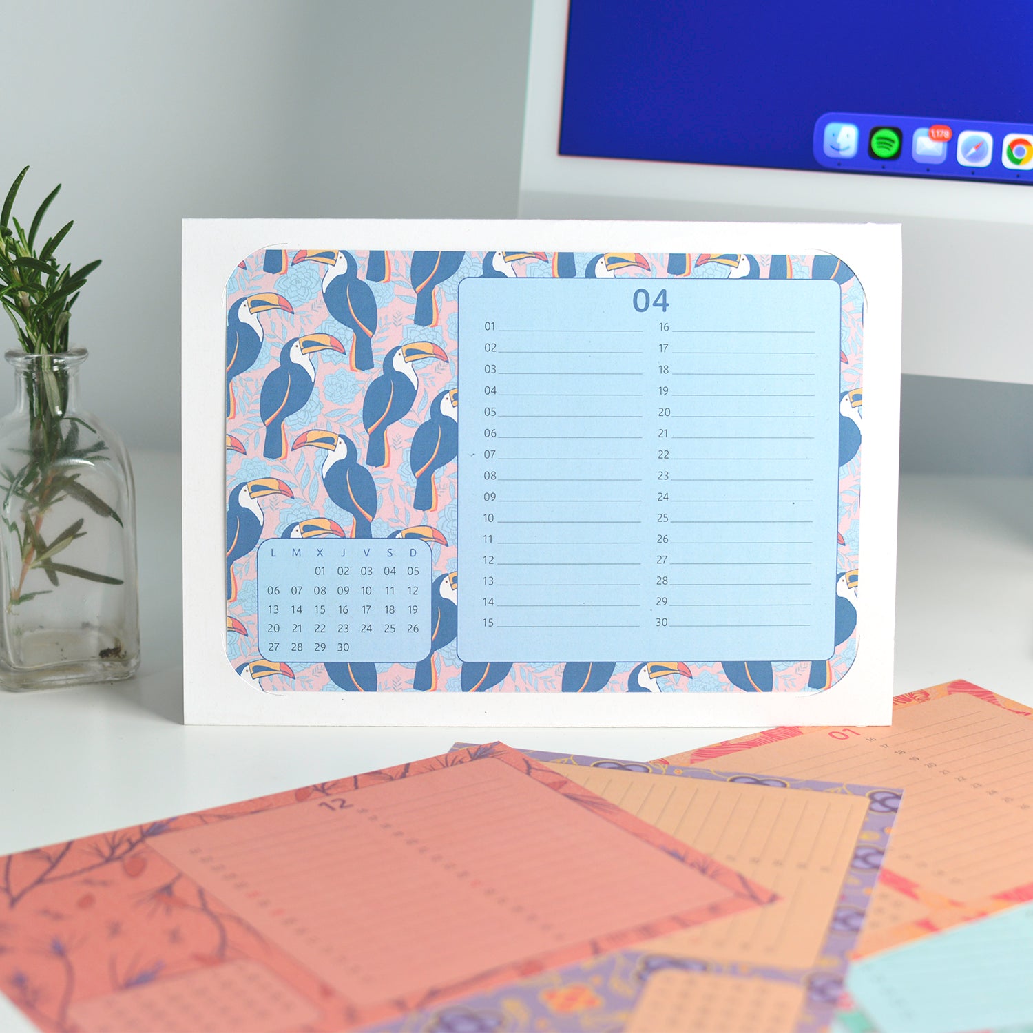 Calendario de mesa con soporte para poder agregar y cambiar los diferentes meses del año.